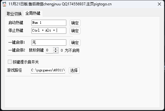 启动热键,停止热键 一键启停1 一键启停2 任选一组即可.
